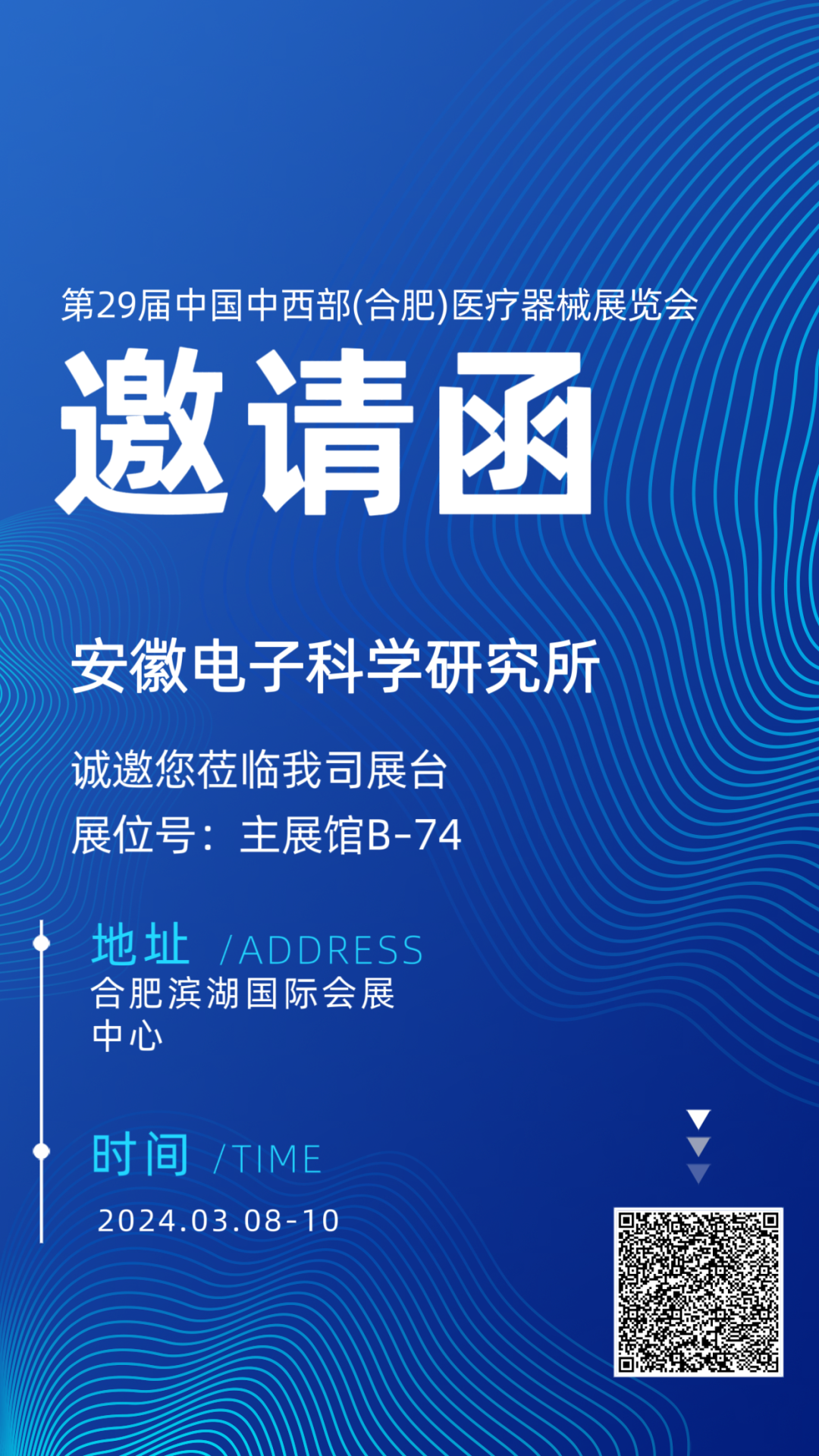 2024第29届中国中西部(合肥)医疗器械展览会(简称“合肥医博会”)将于3月8日-10日在合肥滨湖国际会展中心举办。届时,安徽电子科学研究所携自研肺功能测试仪、自动心血管功能测试诊断仪、全自动电子血压计、动脉硬化检测仪等产品亮相,欢迎新老客户前来参观体验。