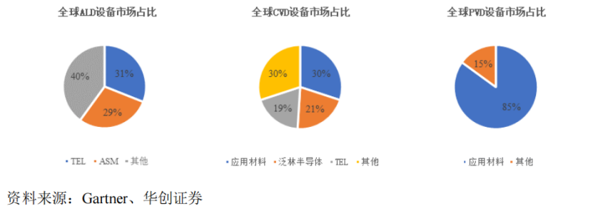 2019年,在全球ALD设备市场中,东京电子(TEL)和先晶半导体(ASMI)分别占据了 31%和29%的市场份额。