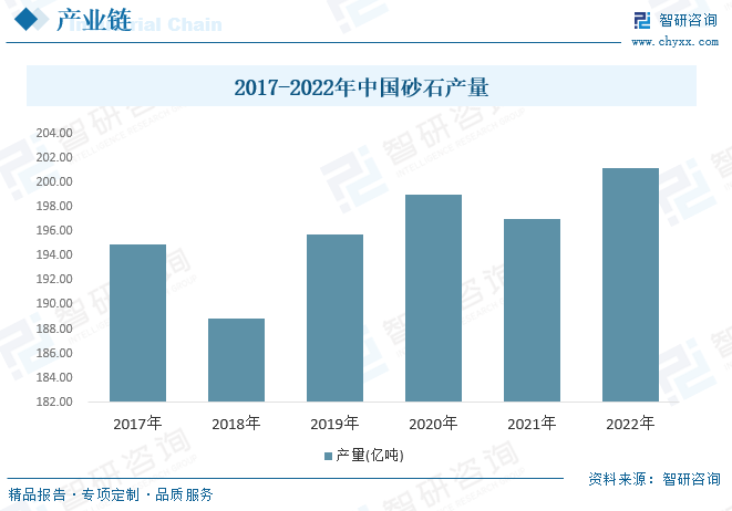 破碎筛分设备下游主要应用领域为砂石行业。我国虽然是全球上最大的砂石生产国,但“砂石荒”现象仍然存在,尤其是在国家放开疫情后,全国各地复工率提升,砂石供应偏紧,市场价格一路上涨。根据数据显示,2021年我国砂石产量为201.2亿吨,同比增长2.13%。
