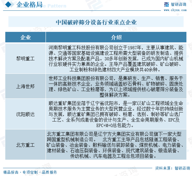 相关报告:智研咨询发布的《2024-2030年中国破碎筛分设备行业市场发展规模及投资机会分析报告》