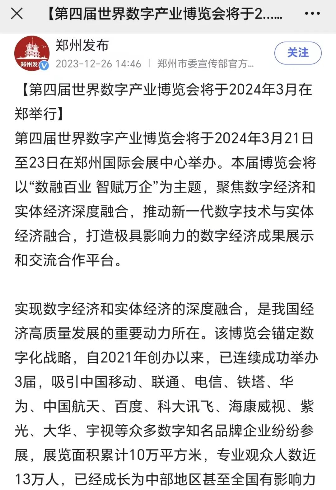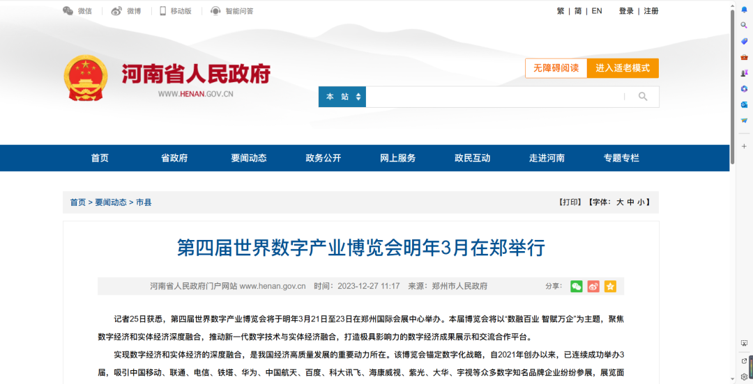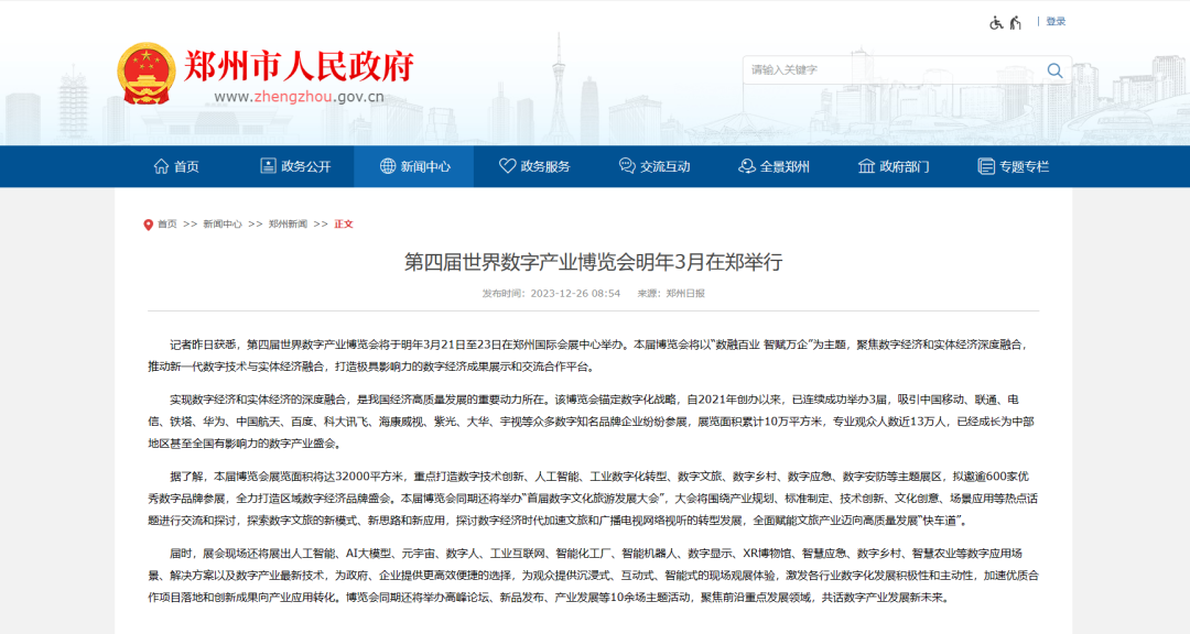 数融百业 智赋万企,第四届世界数字产业博览会将于2024年3月21日-23日在郑州国际会展中心举办。