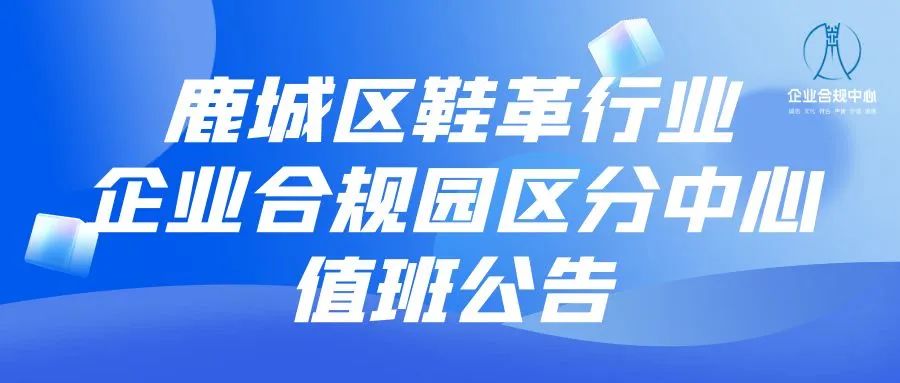 为进一步深化我区重点产业合规改革,推动“1个合规中心+N个指导驿站”服务矩阵实体化运行,为企业发展提供合规服务、引导企业树立合规意识,鹿城区鞋革行业企业合规园区分中心实行值班制,现将三月值班事项公告如下: