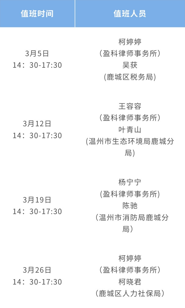 三、三月值班安排表