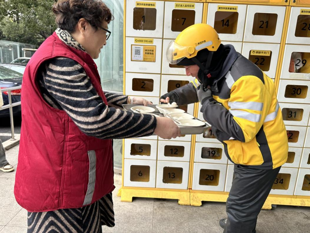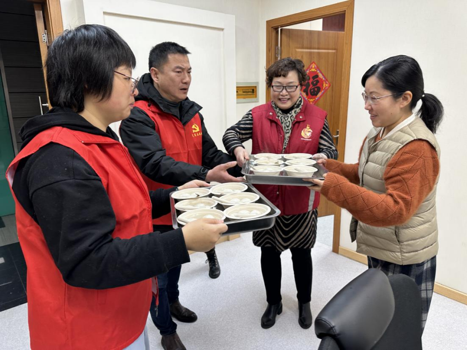 沪东新村街道商会联合会员单位上海宏沛电子科技有限公司,为宏南楼宇坚守岗位的物业工作人员、企业职工们、快递外卖小哥们送去一碗碗热气腾腾的汤圆,寓意着“团团圆圆”。品尝着软糯香甜的汤圆,感受着“沪东”大家庭的温暖与关爱,一位外卖小哥说:“春节每天送外卖到很晚回宿舍,今天能吃到一碗汤圆真的很幸福。”