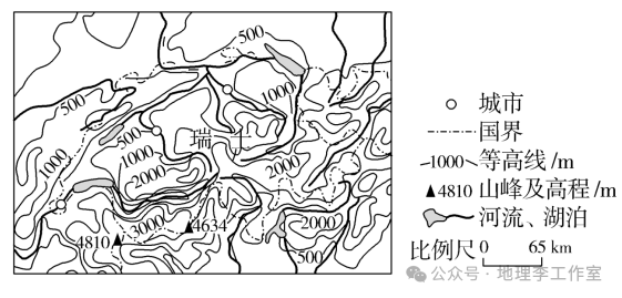 第(1)题,由材料可知,瑞士每年降水量在1000毫米以上,降水丰富,由图可知,瑞士地势起伏大,河流落差大,有丰富的水能资源,可发展电力工业;经济发达,基础设施完善,旅游资源丰富,有世界公园的美誉。
