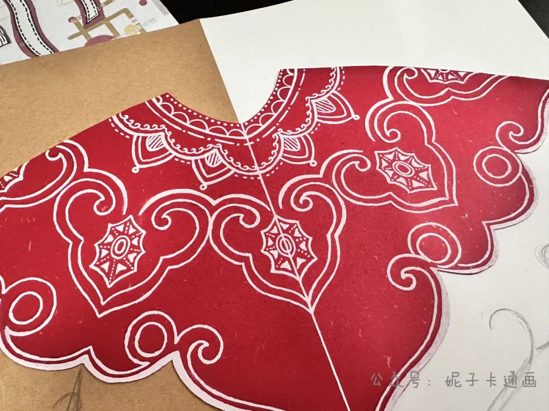 白色高光笔在牛皮纸这一边的云肩