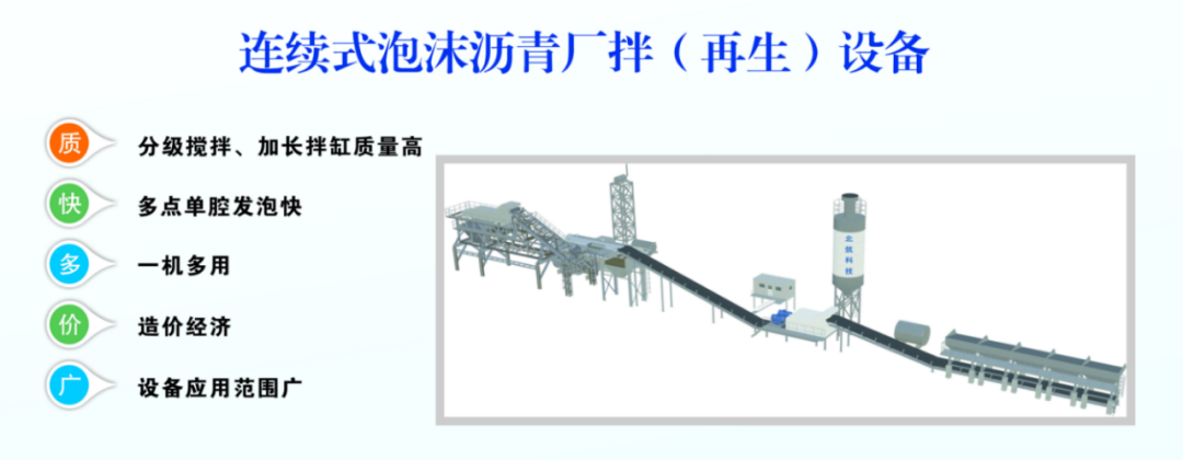 河南北筑沥青发泡科技有限公司定位于“全球沥青发泡技术专业服务商”,专注于沥青发泡技术的研究,专业从事沥青发泡设备的研发、设计和制造,目前提供连续式泡沫沥青厂拌(再生)技术及设备、温拌泡沫沥青混合料技术及温拌沥青发泡装置。连续式泡沫沥青厂拌(再生)设备,属于国内独家产品,打破了进口设备瓶颈制约,可以在水稳拌和站上加装二次拌和系统、沥青发泡装置模块,即可生产水泥稳定碎石、也可以生产泡沫沥青(再生)混合料,实现一机多用。解决了沥青路面废旧料的再生利用,提高道路路用性能,推动冷拌冷铺快速发展,填补了泡沫沥青厂拌冷再生国产化的技术空白,为泡沫沥青厂拌再生技术推广提供了经济适用的方法。