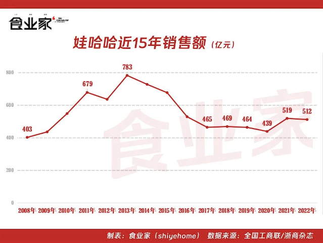 娃哈哈创立已有30年以上,与巅峰时期的700多亿销售额相比,从2015年开始,营收狂降200多亿。