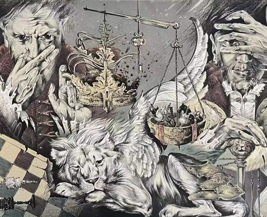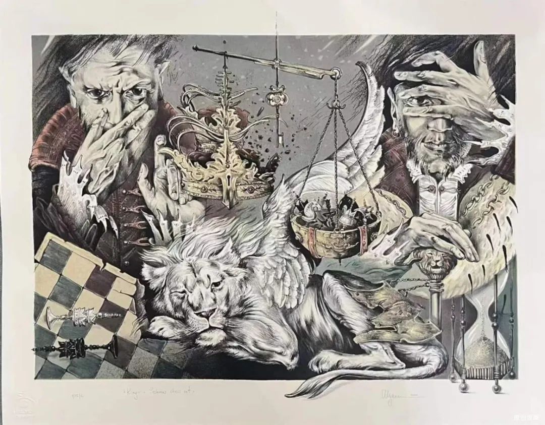 乌里扬娜·图尔琴科以其细腻温柔的笔触和独特的艺术风格而闻名。她的作品充满了美感和张力,同时又充满了幻想和内心的丰富。在这幅《国王》中,我们可以看到她精湛的技法将石版画的特征发挥到了极致。画面唯美霸气,抽象中透着神秘,让人不禁陷入其中,想要探究更多的秘密。