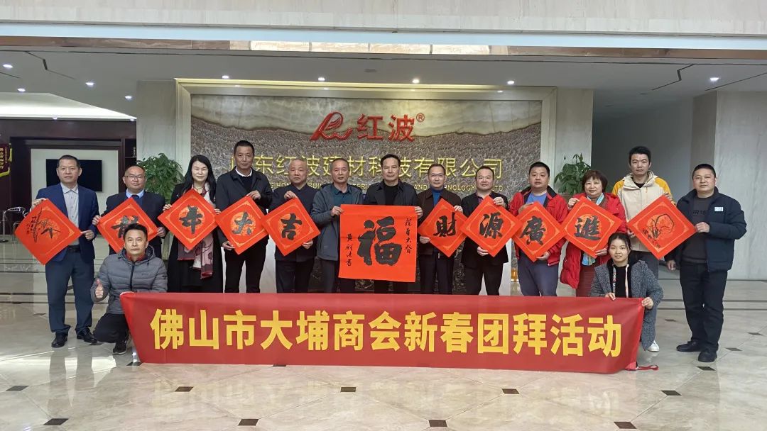 2月28日,佛山市大埔商会新春团拜一行在刘茂发轮值会长的带领下,迎着和煦的朝阳,踏着温暖的春风,商会拜年团依次来到会长单位"广东红波新材料集团有限公司",理事单位"佛山市惠泰农业有限公司"、"佛山市科伦机电设备有限公司"进行拜访。