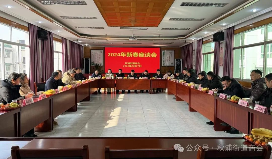 2月27日上午,秋浦街道商会联合秋浦街道办事处隆重召开企业新春座谈会,辖区30余家企业负责人参加座谈。会议并邀请贵池区工商联常务副主席李春道,秋浦街道党工委书记吴岳胜、人大工委主任巩茂旺、党工委副书记冷红生、纪工委书记叶萌、宣传部长徐源源参加此次座谈会。