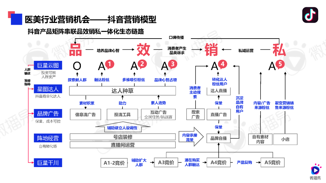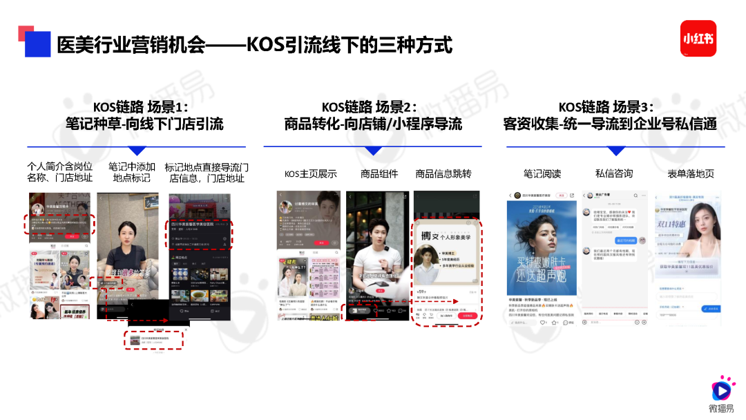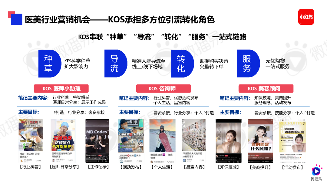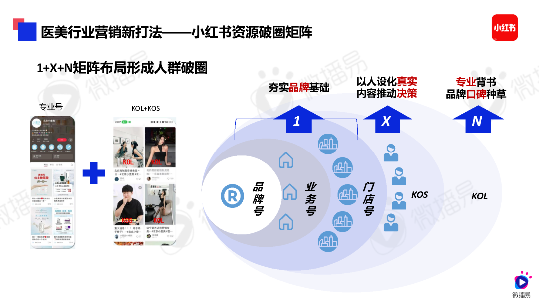 报告认为,医美品牌可以通过矩阵资源布局,打造品牌号和业务号和门店号等,通过KOS和KOL的内容推广,提升品牌口碑和知名度。产品矩阵化能够高效串联品效销私一体化生态链路,为品牌的阵地经营提供更多可能性。