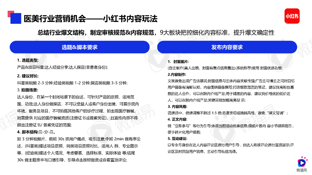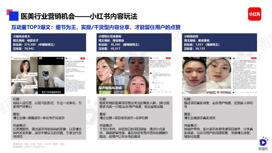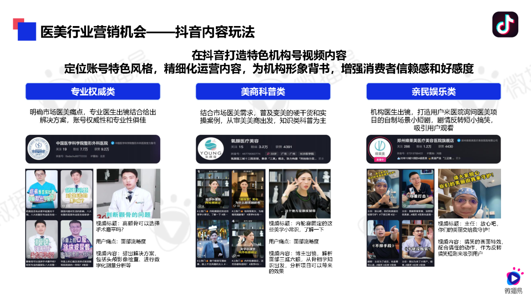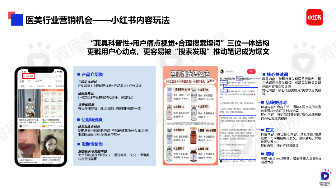 品牌也需要在策略制定上根据产品发展周期科学运营管理,向快消品借鉴,寻求创新连接点。在内容方面,情绪体验型内容将成为主流,更有利于建设品牌口碑。医美品牌还需与搜索、流量、直播等渠道紧密合作,科学优化内容,提升竞争力。