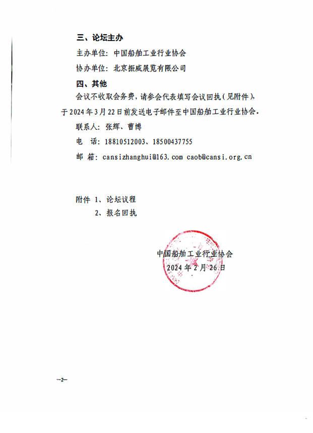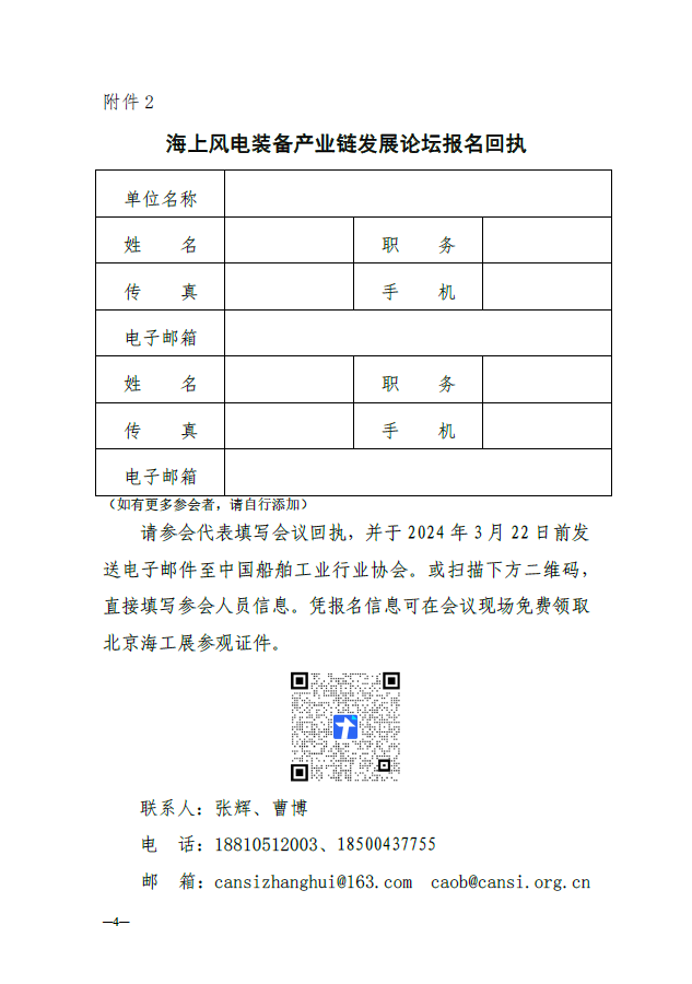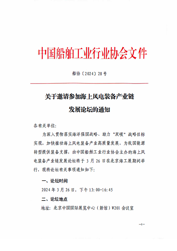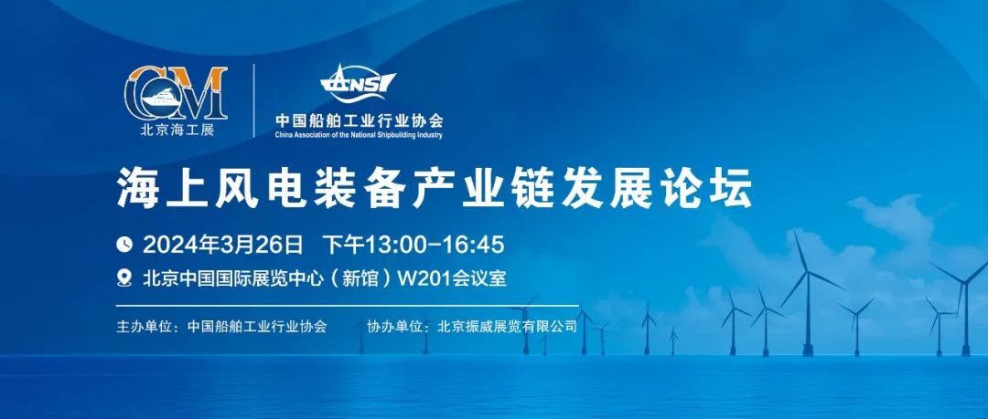 3月26日,由中国船舶行业协会组织主办、北京振威展览有限公司协办的“海上风电装备产业链发展论坛”即将在第十四届北京国际海洋工程技术与装备展览会(CM2024北京海工展)期间举办。论坛邀请了来自研究机构、船级社、船厂、配套企业等产业链上下游的专家,围绕产业发展的热点问题进行交流演讲。届时欢迎各界同仁朋友莅临,共谋海上风电装备产业发展,探讨赢得未来的取胜之匙!