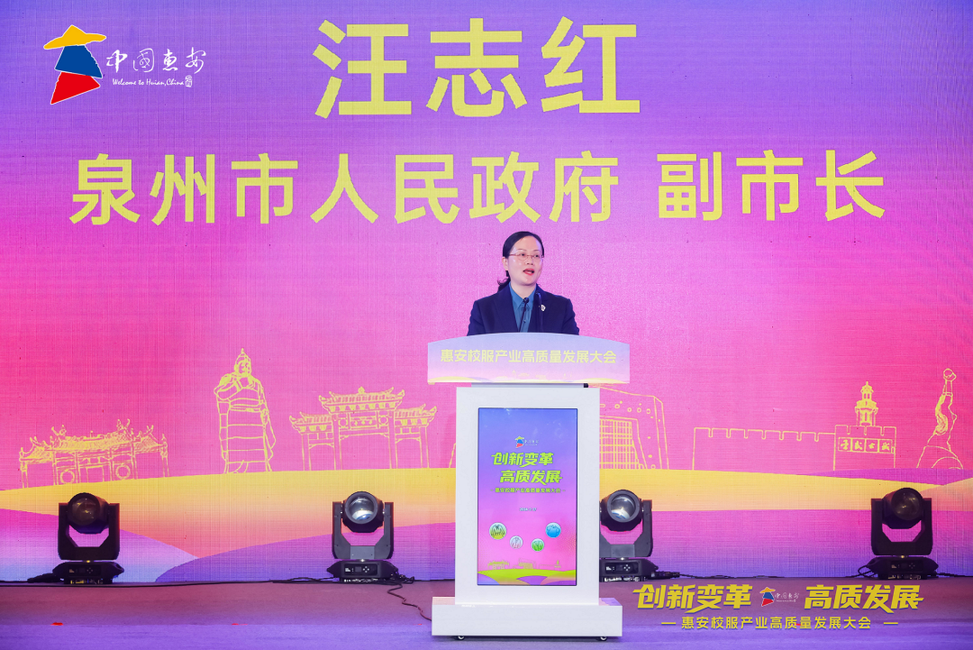 汪志红代表泉州市委、市政府向出席活动的各位来宾和朋友们表示热烈的欢迎,并向长期以来关心泉州纺织服装产业的上级部门和致力于惠安校服产业发展的各位企业家、专家学者表示衷心的感谢和崇高的敬意。汪志红指出——