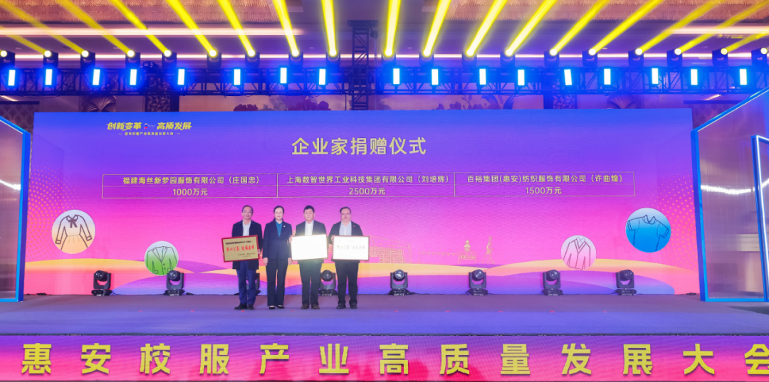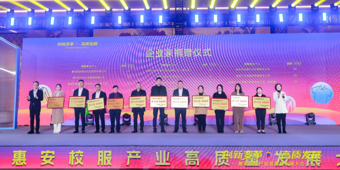 要初心不变,在拼搏奋进中共赢未来。希望大家当好坚守实业的企业家,把校服产业做得越来越好;也希望大家当好惠安发展的合伙人,把企业发展宏图与惠安发展蓝图有机融合起来;还希望大家当好义利天下的慈善家,延续向上向善、情系桑梓的好传统,继续用心用情回馈社会,反哺教育。