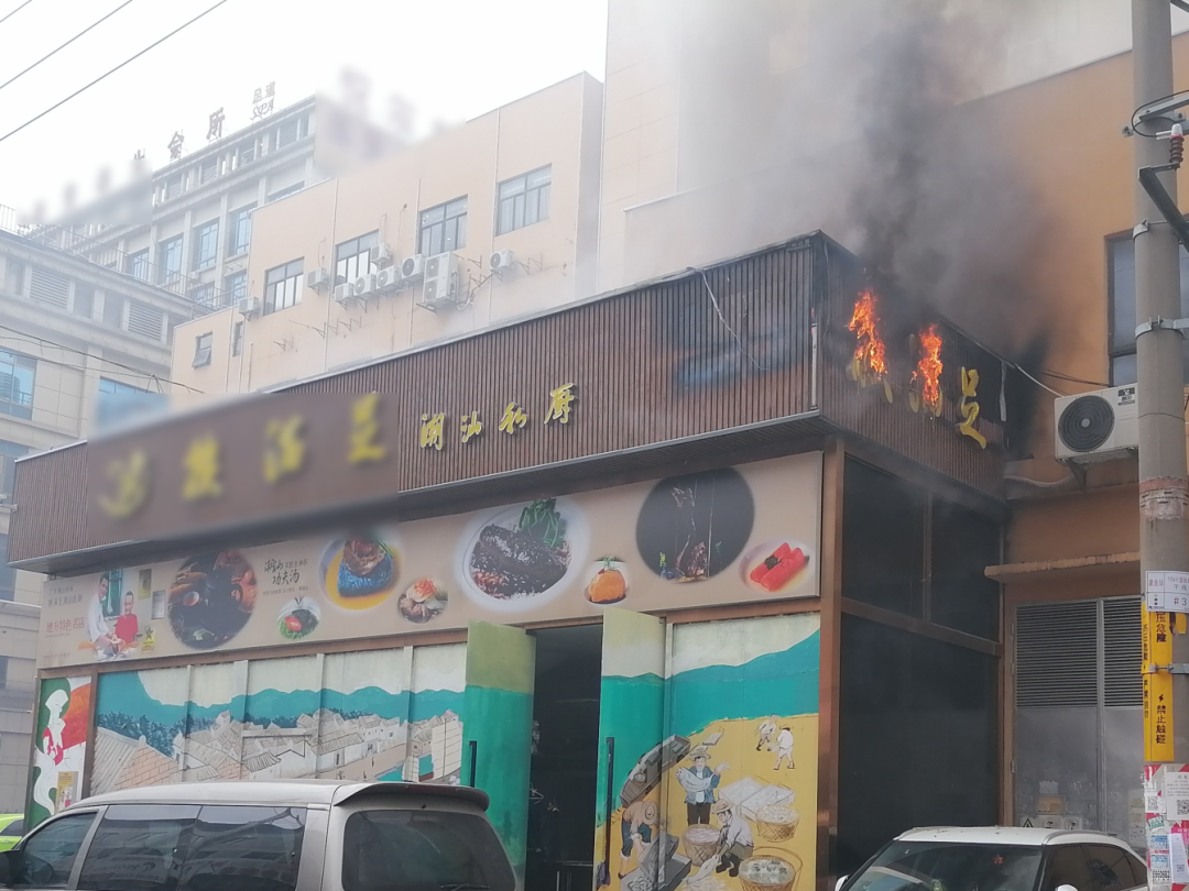 原来,员工在尚未营业的餐馆内做员工餐时,正在运作的抽油烟机烟囱突然冒出了火光,警辅人员跑到后厨一看,连接抽油烟机的烟囱仍在冒明火,火势顺着油烟管道,蔓延至外墙上的店铺牌匾,如果不及时扑灭,后果不堪设想!
