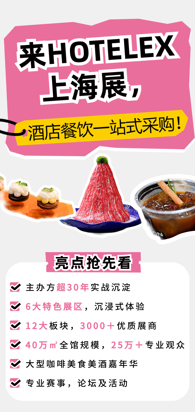 在这场殿堂级的采购盛宴上,食品食材、咖啡茶饮、餐饮设备、烘焙、桌面用品等品类一应俱全。无限商机和智慧的碰撞,尽在2024HOTELEX上海展!