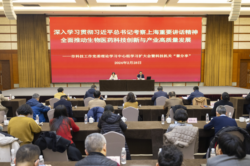 2月28日下午,市科技工作党委召开理论学习中心组学习扩大会,围绕“深入学习贯彻习近平总书记考察上海重要讲话精神,全面推动生物医药科技创新与产业高质量发展”开展专题学习,邀请清华大学药学院教授鲁白作专题报告。市科技工作党委书记徐枫主持。
