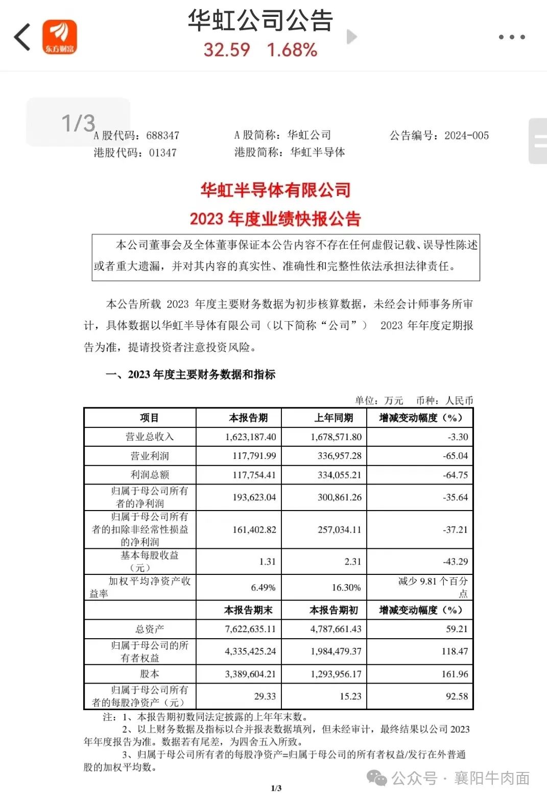 华虹半导体近日发布的2023年业务预告,揭示了半导体行业在全球经济波动与技术周期调整下的复杂局面。报告期内,公司营业收入微降3.30%,而营业利润和利润总额分别大幅下降65.04%和64.75%,净利润也出现了35%以上的同比下滑。