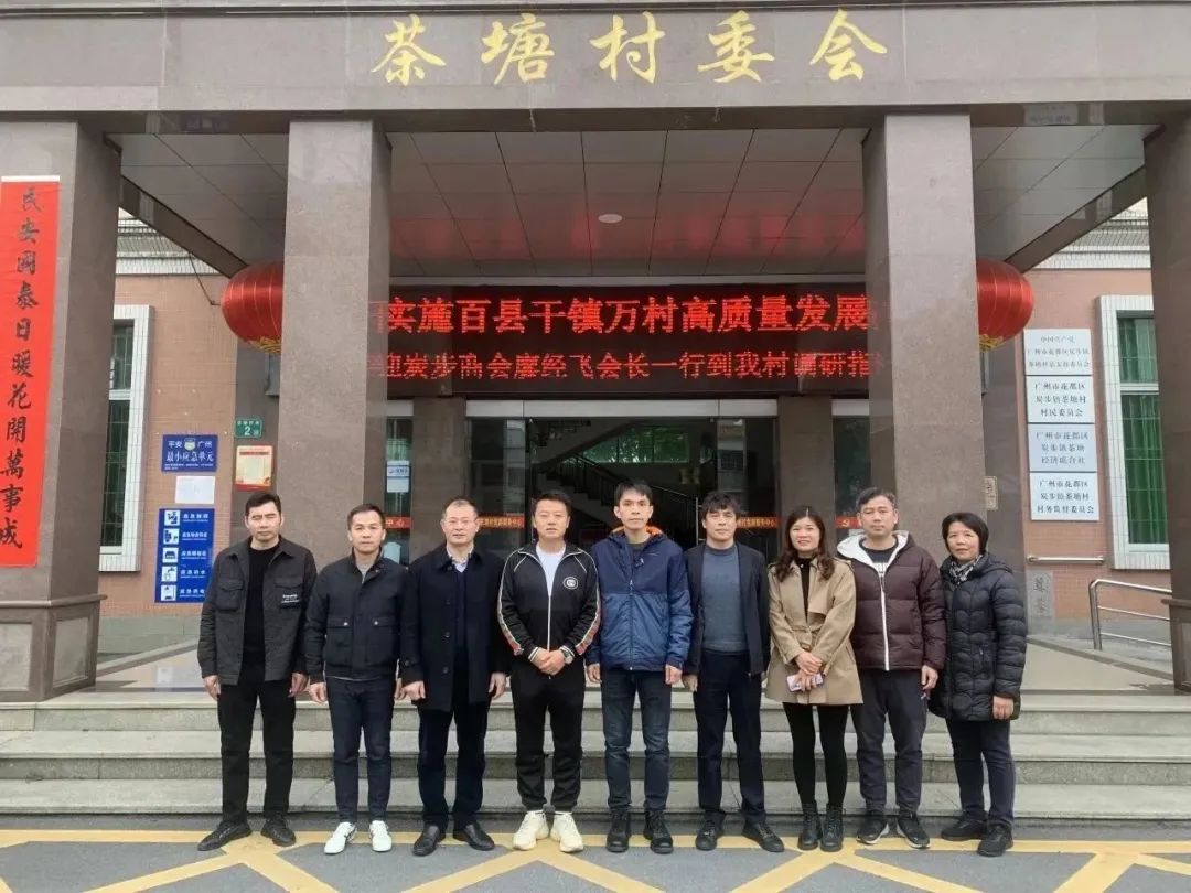 为紧跟广东省高质量发展头号工程“百县千镇万村高质量发展工程”步伐,全面推进炭步镇高质量发展,2月28日下午,炭步镇二级调研员许文生,炭步镇商会会长廖经飞,副会长兼执行秘书长汤剑成,商会党支部书记、秘书长袁惠萍到花都区百千万工程首批典型村-茶塘村进行参观考察。