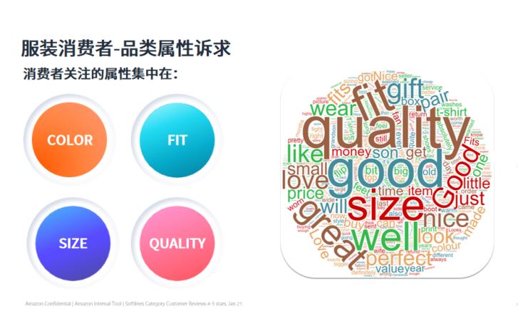 在探讨服装消费者的核心需求时,通过分析顾客评论中出现频率较高的关键词,我们揭示了消费者在服装选择上最为关注的四个产品属性: