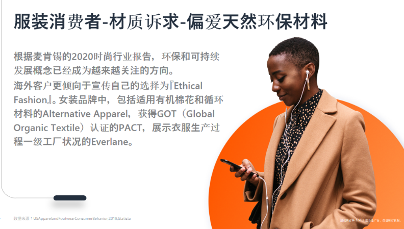 材质是做服装品类离不开的一个重要话题。根据麦肯锡2020年时尚行业报告发现,环保以及可持续发展这类比较新兴的概念,已经逐渐成为了大家关注的方向。