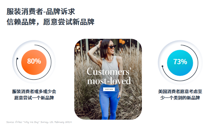 高达80%的服装消费者表示,他们在一定程度上愿意尝试新的品牌。特别是在美国,消费者们通常愿意在至少一个类别中考虑新品牌。