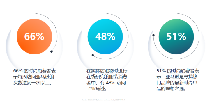 当然,在选择最新的时尚单品或热门品牌时,超过一半的时尚消费者(51%)会将亚马逊作为他们的首选平台。因为