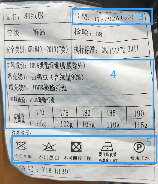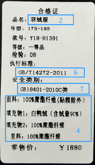 应采用耐久性标签形式。这部分内容如果不是化学专业毕业,许多小伙伴都是看不懂的。化学名称看不懂也没太大关系,天然纤维的名称大家都知道,无非就是棉、麻、丝(一般包括桑蚕丝和柞蚕丝)、动物皮毛、羽绒羽毛。天然纤维大多亲服性强,但是易磨损不易打理;化学纤维不易掉色、使用寿命长、功能性强,但是透气性一般比天然纤维弱。所以选购衣物时,贴身穿的天然纤维含量高穿着比较舒服,而外套一般选用天然纤维与化学纤维混纺面料更为合适。