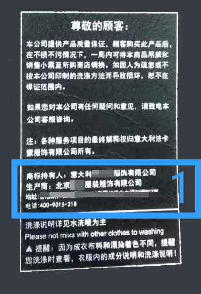 这条的实质是标明能够承担法律责任的主体,因此进口服装,就应注明产地和经销商的具体情况。
