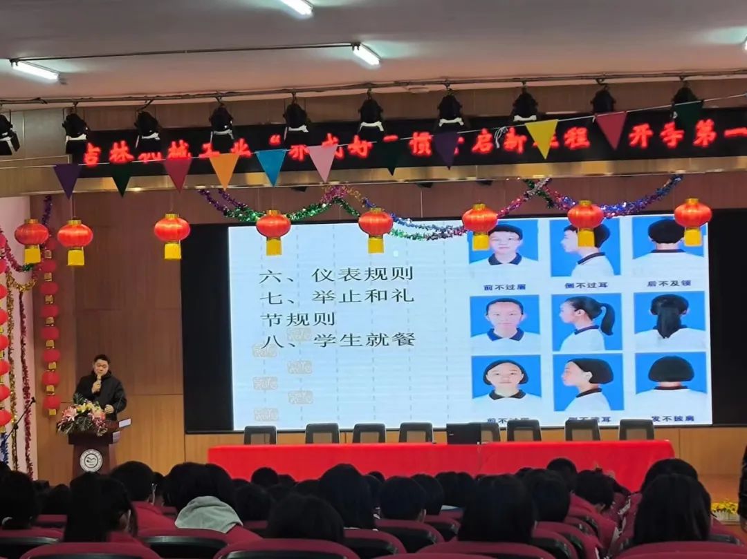 2月27日下午,吉林机械工业学校学生处以“开学第一课”的形式组织全校学生开展“养成好习惯,开启新征程”期初学生主题教育大会。本次主题教育由学生处副主任王永强主讲,在校1000余名学生参加了本次活动。