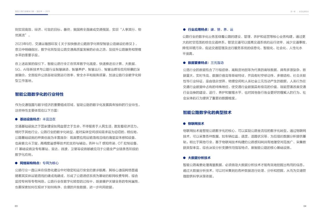 智能公路是数字化技术在交通领域的具体应用,实现了公路全流程的数字化转型,从而提高了公路的建设与运行管理服务水平。在智能公路中,数据被视为关键要素和核心驱动,通过采用AI智能技术、大数据、物联网、5G通信等多种先进技术手段。