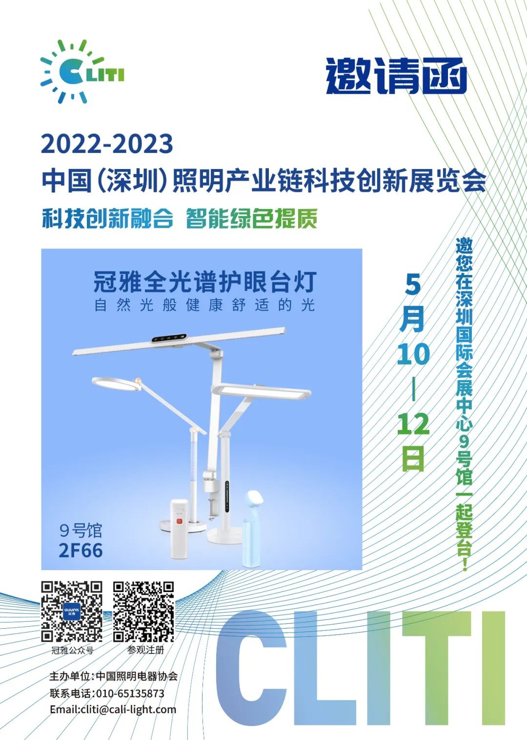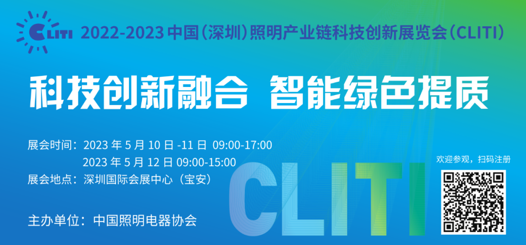 由中国照明电器协会主办的“中国(深圳)照明产业链科技创新展览会(CLITI展)”,将于2023年5月10-12日在深圳国际会展中心(宝安)举行。