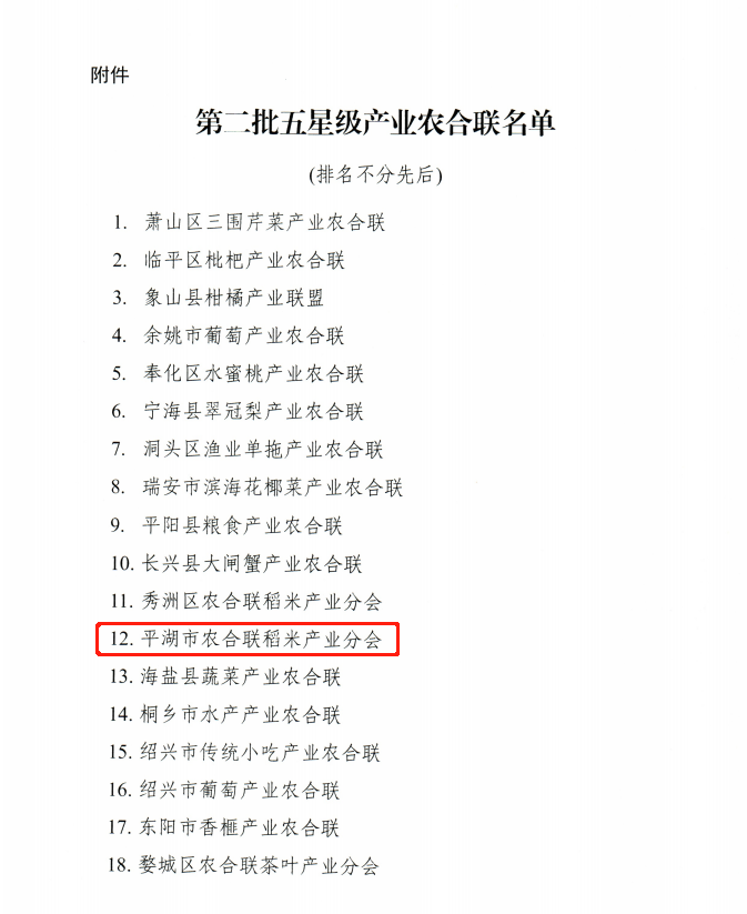 做大做强稻米产业。新埭镇农合联依托稻米产业农合联,采用“公司+基地+会员”的发展模式,以“品牌+保险+订单”形式,统一品种、技术、仓储、销售等环节,实现本地生产、储存、加工。2023年推出“优质稻米收入保险”,以“品牌+保险”形式开展订单水稻生产,保险金额400万元,实现水稻优质优价和粮农共富。稻米产业农合联2023年被浙江省农合联执委会评定为五星级产业农合联,为平湖市首家五星级产业农合联。