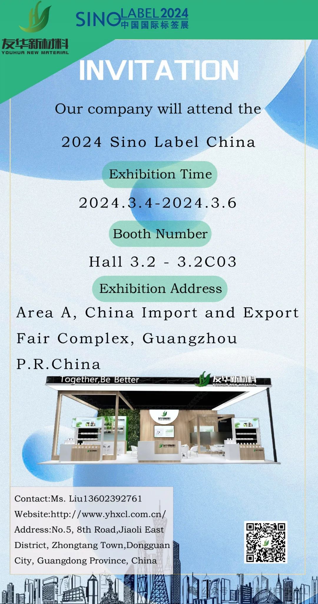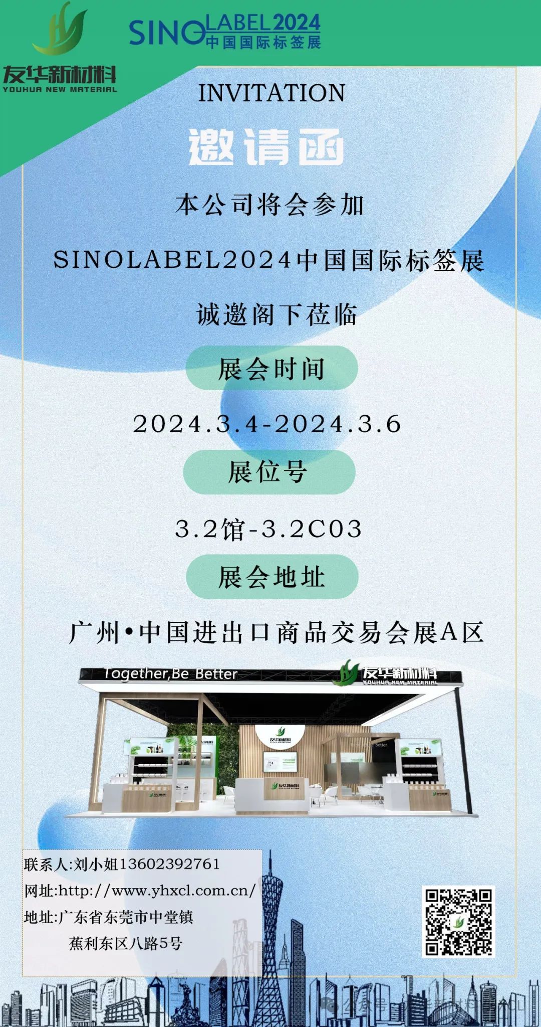 大家好,广东友华新材料科技有限公司将参加2024SinoLabel中国国际标签展,展会将于2024年3月4日-6日在广州·中国进出口商品交易会展A区举办。展位号:3.2馆-3.2C03;