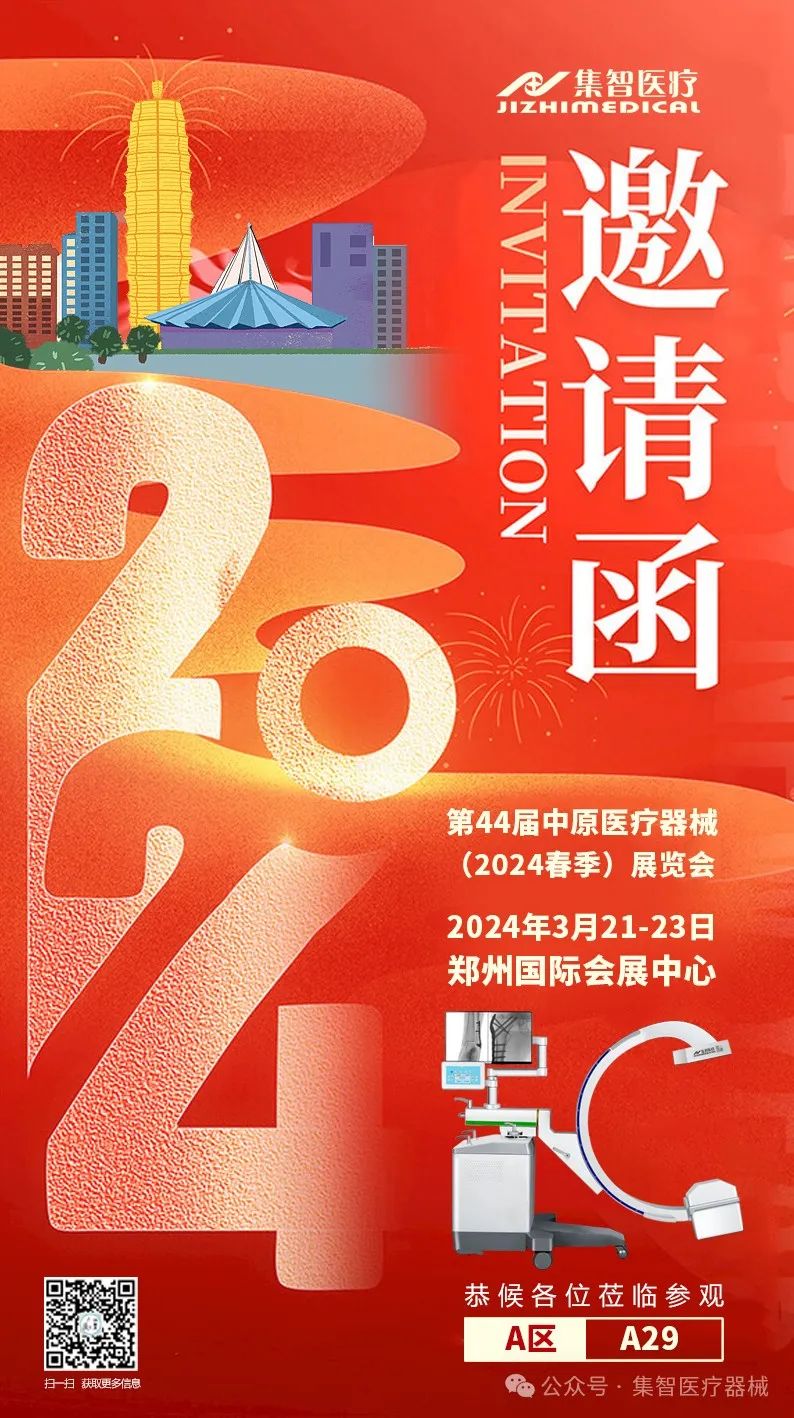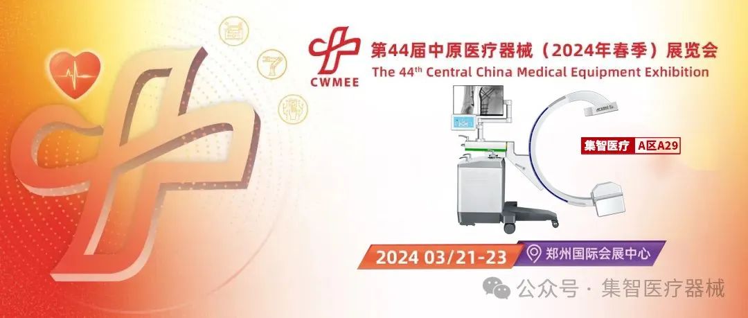 您好!CWMEE·中原医疗展作为国内历史悠久的专业医疗器械展览会,立足中部,辐射全国,自成立以来,一直致力于服务医疗行业,打造高效的医疗器械贸易交流平台,为行业发展添砖加瓦。第44届中原医疗器械(2024年春季)展览会将于2024年3月21日-23日在郑州国际会展中心举办!集智医疗受邀携明星产品——充电式平板C形臂参加本次展会,【集智医疗展位号:A区A29】诚邀您莅临参观!