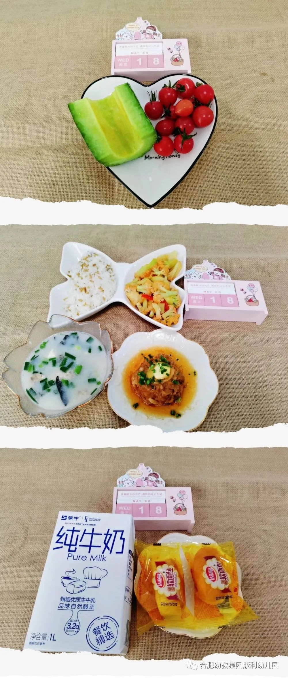 午点:彩蝶轩毛毛虫面包、纯牛奶