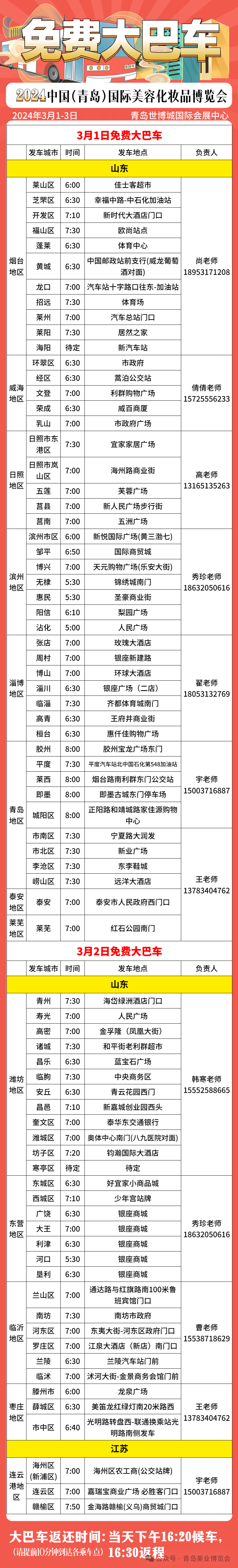 *请联系图中各地区相应工作人员对接当日最新发车信息