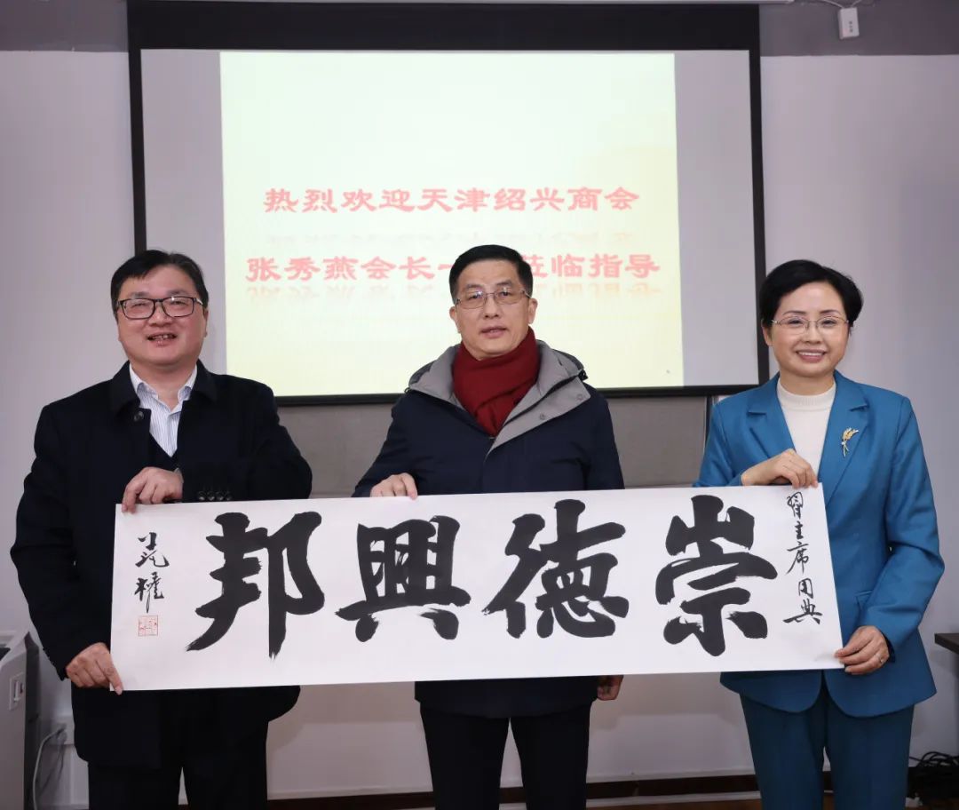 张秀燕会长还向绍兴商会赠送了范曾大师关门弟子、著名青年书画家范权老师的书法墨宝。
