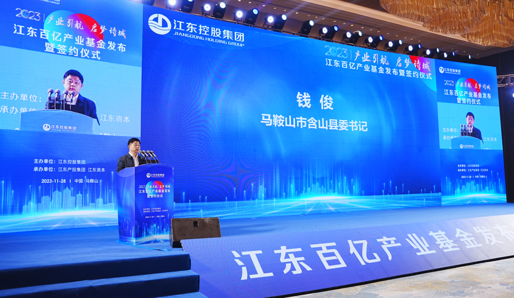 11月28日上午,以“产业引航 启梦诗城”为主题的江东百亿产业基金发布暨签约仪式在马鞍山市金鹰尚美酒店举行。本次大会由江东控股集团主办,江东产投集团、江东资本承办。