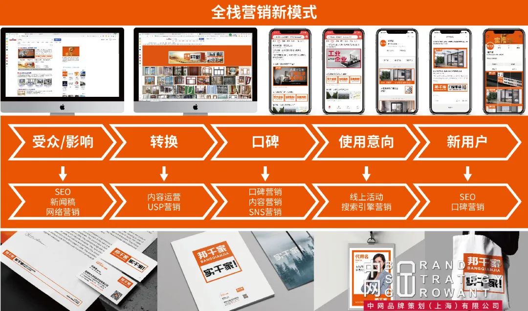 如何在这样的背景下,突出重围,成为行业内的佼佼者,是众多门窗企业亟待解决的问题。为此,邦千家作为龙图节能铝材(宣城)有限公司旗下的门窗加盟品牌,与深耕工业制造业二十余年的中网品牌策划(上海)有限公司合作,希望在其强大的品牌战略支持下,打破传统低效率的获客方式,为邦千家塑造成熟的新加盟模式。