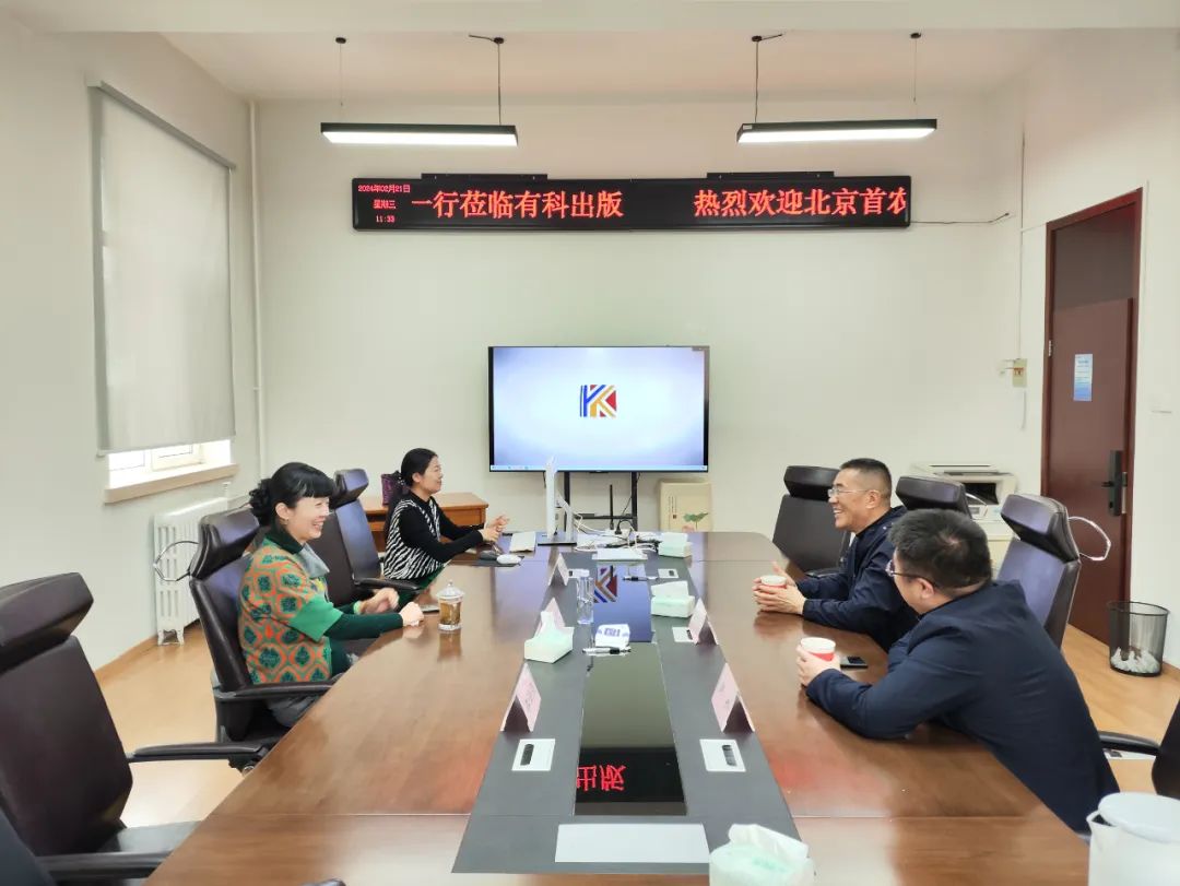2月21日,北京首农股份有限公司董事长王明革一行到有科出版交流,有科出版董事长、总经理钱九红陪同座谈。