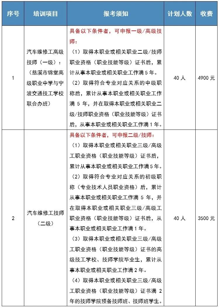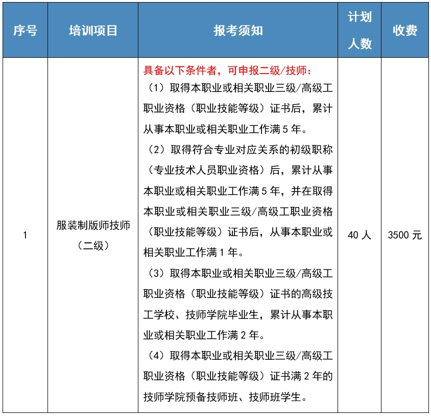 备注:为减少能耗、提升认定质量,同一职业、等级认定申请人数不足40人的,将进行资源统筹,顺延下期开班。