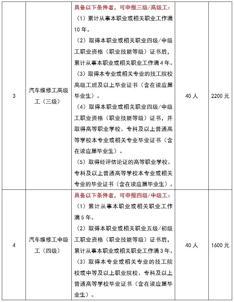 认定工种:汽车电器维修工、汽车车身涂装修复工(油漆)、汽车美容装潢工、服装制版师。