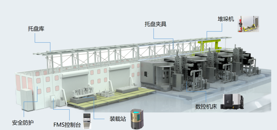 个托盘库。托盘柔性线包含整线独立工作所必须的硬件和软件,工件装夹方便快捷。通过
