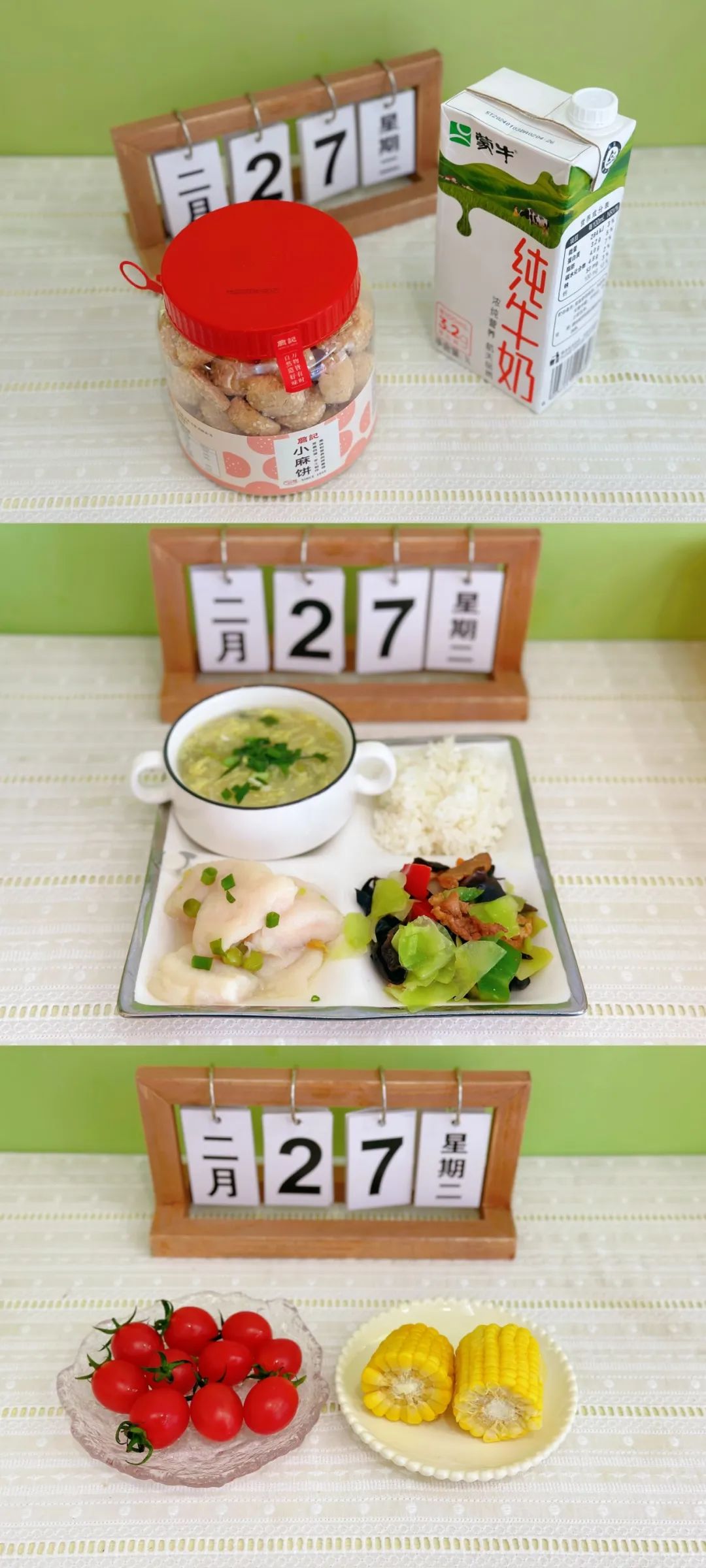 香米饭、清蒸巴沙鱼、莴笋木耳肉片、丝瓜金针菇豆腐蛋羹