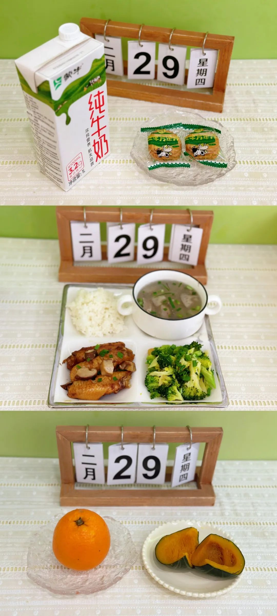 香米饭、鸡翅炖香菇、蒜泥西蓝花、筒骨莲藕汤