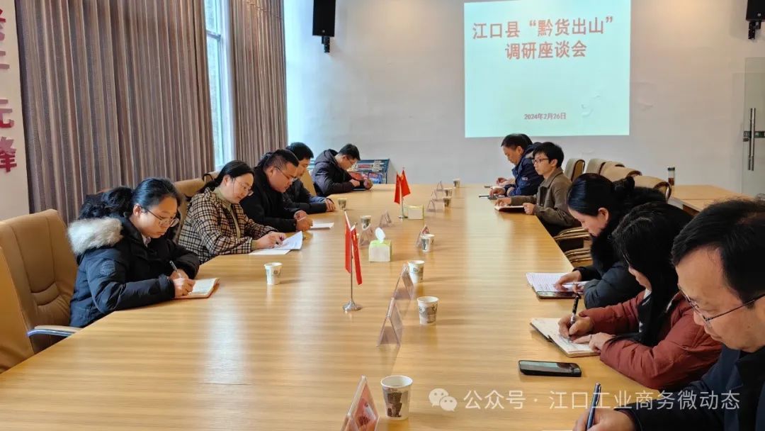 2月26日,江口县“黔货出山”调研座谈会在县工业和商务局召开。县委常委、副县长赵秀华出席并讲话,县文旅局、梵净山粮油公司、农么么电子商务有限公司、贵州梵净黔惠德食品开发有限公司、优历酒业有限公司、贵茶集团、贵州苗药生物技术有限公司主要负责人参加会议。