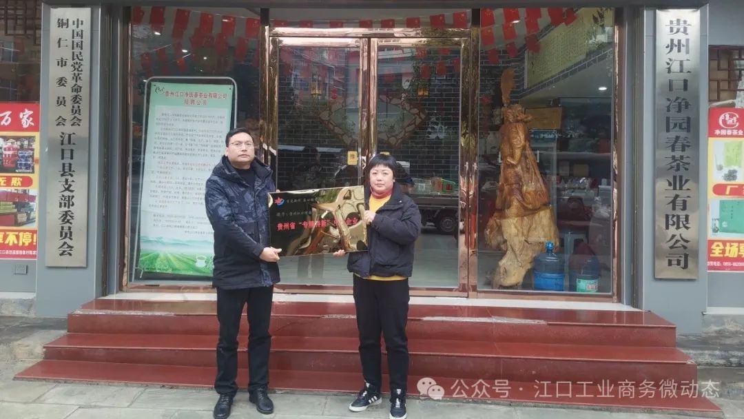 贵州江口净园春茶业有限公司、江口县世佳电气科技有限公司荣获2023年度“贵州省“专精特新”中小企业”称号。2月29日,县工业和商务局副局长杨再权为企业进行授牌。